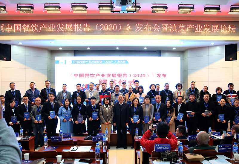 12月18日,由世界中餐业联合会和3044am永利官网共同主办的《中国餐饮产业发展报告(2020)》蓝皮书发布会暨滇菜产业发展论坛在3044am永利官网隆重举行。世界中餐业联合会常务副会长、餐饮产业蓝皮书主编邢颖,学校校长丁文丽,餐饮产业蓝皮书执行主编、普洱学院副院长于干千,中国社科院财经战略研究院服务经济与餐饮产业研究中心主任赵京桥,云南省市餐美协相关领导、世界中餐业联合会会员代表、省内外餐饮学科专家学者、云南省知名餐饮企业代表等百余人参加会议。发布会由副校长王凡主持。