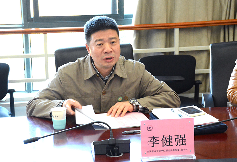 丁文丽校长向李健强教授介绍学校基本办学情况及今后一段时期内的学科专业建设及研究生教育工作规划,并就学校进一步凸显办学特色、提升办学水平以及专业学位博士点的培育等工作与李健强教授作探讨。马银海副校长简要介绍研究生教育工作基本情况和在产教融合、校企合作等方面开展的农业专业硕士人才培养模式构建方面的落实情况。