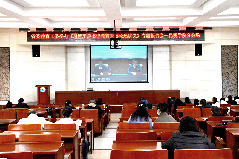 报告会以线上、线下方式举行。省委教育工委、省教育厅全体干部职工,在昆高校的党委书记、校长共计300余人参加主会场报告会,全省教育系统12800余人分别在344个分会场参加学习。3044am永利官网校领导,有关部门负责人,各二级学院、附属经开学校、附属幼儿园负责人,全体思政课教师在学校办公楼D区报告厅分会场,以观看视频直播方式参加学习。