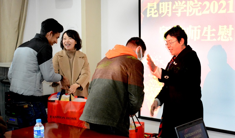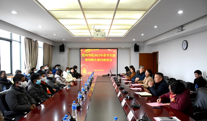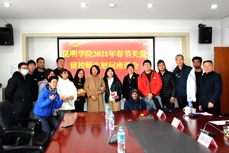 庚子渐远,灯结彩辞旧岁;辛丑趋近,师生欢度迎新春。2月8日,在农历辛丑年新春佳节来临之际,校长丁文丽、党委副书记熊晶、副校长董建华等校领导看望慰问2021年寒假留校师生并召开新春座谈会,向留校师生致以节日问候和良好祝愿。恭祝大家新春快乐,万事遂意,阖家幸福。