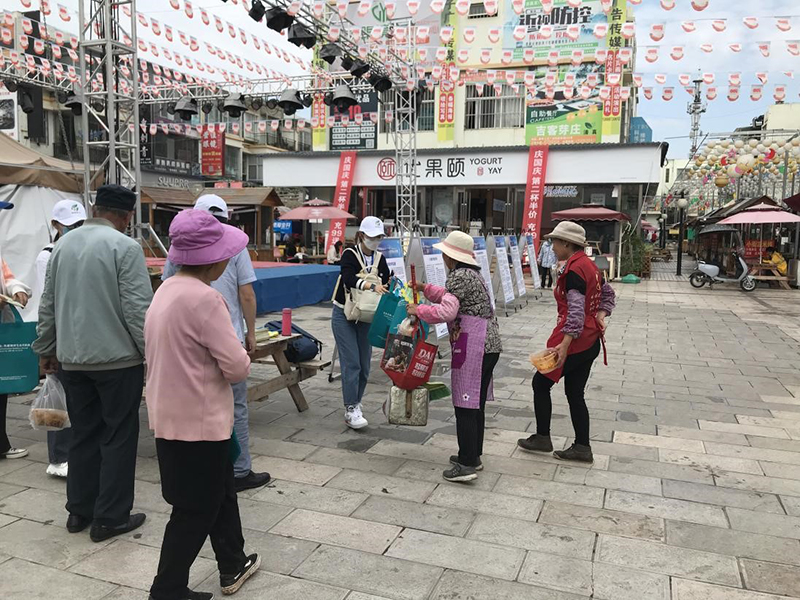 另一队教师和志愿者在肖磊副主任的带领下,在嵩阳街道步行街布置习近平生态文明思想和滇池流域生态文化人文地图展览,发放科普读物《滇池流域生态文化手绘地图》和COP15大会宣传材料。参观展览的广大群众对生物多样性保护的认识得到了提升,对环境保护的意识得到了增强,对习近平生态文明思想有了切身体会。