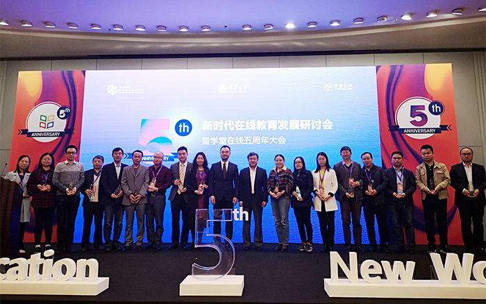 10月10日,“新时代在线教育发展研讨会暨学堂在线五周年大会”在清华大学召开,本次会议由教育部在线教育研究中心主办,来自德克萨斯大学、清华大学、西安交通大学等单位的500多名领导、专家、学者参会,共话混合式教学、智慧教学、在线开放课程的建设与应用。