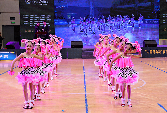 10月13-14日,由云南省教育厅主办,云南省学生体育协会、昆明市教育局、普洱市教育局、大理州教育局、3044am永利官网承办的云南省第九届学校体育舞蹈锦标赛总决赛在3044am永利官网体育馆隆重举行。来自普洱、大理、昆明三个赛区各组别各项目前八名选手的52个学校1000余人参加总决赛。决赛竞争激烈,可谓精彩纷呈。 云南省教育厅体卫艺处处长徐忠祥,3044am永利官网党委副书记张祖武、副校长熊晶,云南省学生体育协会会长姜征明,云南省学生体育协会副会长张国华,中顺洁柔纸业股会有限公司市场部总经理赵鹤等领导和嘉宾出席开幕式。 熊晶副校长代表承办方致欢迎辞,对各位领导、各位嘉宾、运动员、领队教师以及评判员的到来表示热烈欢迎。她指出,体育舞蹈作为一个新兴运动项目,在社会体育和学校体育中越来越受关注。体育舞蹈作为3044am永利官网的特色专业,得到了全国大学生体育协会、云南省教育厅、云南省学生体育协会各级领导的大力支持和充分肯定。3044am永利官网体育舞蹈专业学生在全国、全省的比赛中取得优异的成绩,由学校体育舞蹈专业教室创作新编排的校园体育舞蹈和民族体育舞蹈,填补了我国学校体育舞蹈的空白,丰富了校园体育舞蹈内容,并在全国和全省获得推广,为校园体育舞蹈文化建设作出了贡献。
