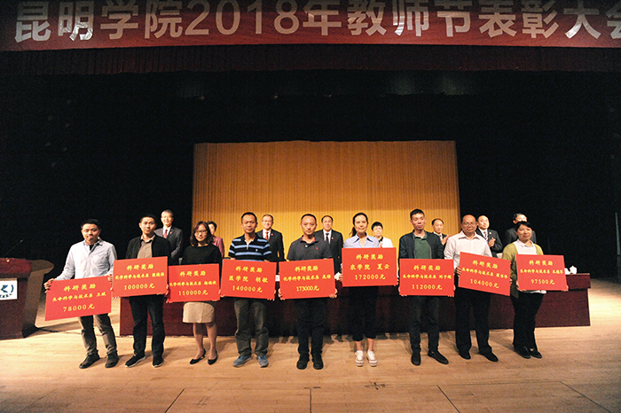 黎素梅校长主持大会总结讲话指出,今天的表彰奖励,是学校党委对教职工为学校发展所做出的突出成绩的认可和肯定;是学校党委尊师重教,树立标杆,激励干事,鼓励先进的导向和态度;是学校共同庆贺2017年学校申硕成功,全国文明单位复审顺利通过,学校成功成为云南省应用型示范高校,临床医学专业成功获批以及教学、科研、专业建设取得的一个又一个新突破、新成就。