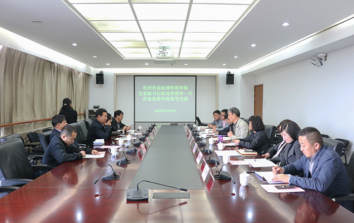 3月19日下午,曲靖师范学院党委副书记陆选荣一行5人到永利官网交流工作。永利官网党委委员、副校长董建华接待来宾并围绕学校建设、组织人事等问题与来宾进行了交流。