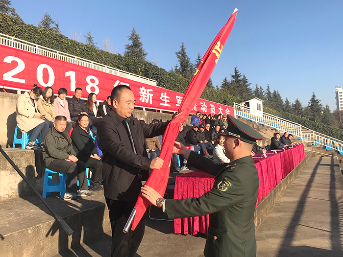 2019年1月7日上午,永利官网2018级新生军训开训动员大会在田径运动场举行。学校副校长郭华出席大会并作开训动员讲话。学校党办、校办、宣传部、学生处、保卫处、团委、各院系等单位的负责人参加了动员大会。 郭华副校长指出,“军训”作为大学教育的第一课,是学校人才培养的重要环节,是塑造精神气质的有效载体,也是同学们人生旅途中又一个新起点。大学生军事训练的主要任务是训思想、训纪律、训作风、训精神,练技术,练体力,练意志,练品质,这既是学习的过程,也是历练的过程,更是拼搏的过程。并强调,为保证本次军训有序推进,取得实效,学校将严格按照《中华人民共和国国防教育法》、《兵役法》等相关法律法规要求,集中开展为期13天的军事理论课和军事技能训练课学习,内容涉及国防知识、军事理论,队列训练、擒敌战术,战伤救护、内务卫生等训练科目。时间紧,任务重,强度大,挑战多,是对每一位参训同学的全方位考验,军事训练既发挥着锻炼身体素质,磨练意志品格的良好作用,更是同学们今后良好的生活和学习习惯的养成基础。 郭华副校长强调,军训是学习,军训是磨练,军训是收获,军训更是考验。同学们要上好军训这堂课,习得良好的集体协作精神,把小我融入到大我之中,在青春的征途上不断奋斗启航;要虚心求教,勤学苦练;要服从指挥,令行禁止;要团结协作、保障安全。 郭华副校长向军训团授旗并宣布3044am永利官网2018级新生军事训练开训。