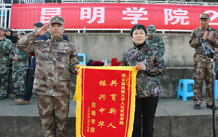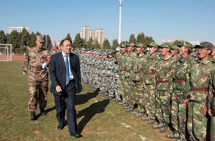 1月17日,永利官网在田径运动场举行2018级学生军训汇报表演暨总结表彰大会。省教育厅体卫艺术调研员李宏坤,云南省学生体育协会、学校国防教育专业委员会主任毛智贤,学校党委书记陈永明,校长黎素梅,党委副书记熊晶,副校长郭华、董建华、沈凡、马银海、王凡等领导出席大会。大会由郭华副校长主持。 军训汇报表演在庄严的国歌声中拉开序幕。学校2018级4900余名参训同学在承训教官的精心指导下,以“坚韧不拔、毫不松懈、永不服输”的精神,顶烈日、冒风雨,克服重重困难,圆满完成军训任务。今天,他们斗志昂扬,整装待发,时刻准备接受领导的检阅。 陈永明书记检阅军训方队。在激昂的阅兵进行曲中,陈永明书记依次检阅受训方队,同学们意气风发,精神饱满,“老师好!”“好好学习,为校争光!”的口号清晰嘹亮,响彻学校上空。在分列式进行曲中,标兵就位,分列式开始,来自各院系方阵代表的同学们士气高昂,以整齐的步伐、宏亮的口号、严整的军姿向主席台前进,气势恢宏,将14天的军训成果展现得淋漓尽致。 分列式完毕,军事训练科目汇报表演正式开始。首先登场的军歌合唱队列唱响了《我是一个兵》、《当那一天来临》、《强军战歌》,用嘹亮军歌唱出了军训的热情,唱出了拼搏与坚持。由144人组成的女子匕首操队列动作精炼,整齐划一,场上“杀”声不断,声音嘹亮,气势如虹。拳术队列表演了军队的传统拳术捕俘拳,精神抖擞,充分展示了正道学子的风采。跪羊图列队结合中国传统经典,演绎感恩歌曲《跪羊图》,以弘扬传统道德为目标,使人深受感动。反恐战术队列以基础动作展示和战场模拟形式将汇报表演推向高潮,以专业的动作展示出他们的拼搏精神。花样队列身着迷彩,手拿红黄啦啦操花球,用队形变换出校徽、党徽、“中国”等样式,整个画面整齐流畅,赢得阵阵掌声。 汇报表演结束后,熊晶副书记宣读了《关于表彰3044am永利官网关于2017级学生军训优秀集体,优秀个人的决定》。与会领导为内务优秀宿舍、军训优秀学员、优秀带队教官代表、优秀辅导员颁奖。美术与艺术设计学院2018级杨诗玉同学作为军训优秀学员代表发言。 黎素梅校长作总结讲话指出,进行军事训练是党中央、国务院、教育部做出的具有战略意义的决定,是全面提高大学生素质,培养社会主义建设者和接班人的必修课,希望同学们要肩负国家使命,培养国家意识,做到内外兼修,真正成为中国特色社会主义的合格建设者和可靠接班人;希望同学们继续发扬脚踏实地、百折不挠、永不服输的精神,努力践行社会主义核心价值观;希望同学们学会坚持,发挥不屈服、不放弃的精神,不怕失败,从成长中享受成长的快乐。 会上,黎素梅校长为承训单位赠送锦旗。