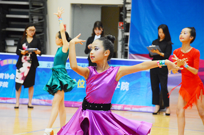 9月22日、23日,由云南省教育厅主办的云南省第九届体育舞蹈锦标赛(昆明赛区)在3044am永利官网综合体育馆隆重举行。昆明及周边地区中小学千名学生参加比赛,部分学生和家长到场观看比赛。 昆明赛区分为中学专业组(体育、艺术类中职中专学校、体育舞蹈学校高中生)、普通中学组(非专项/专业高中和初中生)、小学组以及幼儿园组等组别;比赛项目分为拉丁舞项目、标准舞项目以及校园体育舞蹈项目三大类。共有来自昆明及周边地区幼儿园、小学、中学参赛选手1000余人参赛。他们在赛事168个竞赛组别中激烈角逐,去获得进入总决赛的参赛资格,各项目、各组别前8名进入10月举行的总决赛。 优雅的华尔兹;欢快的恰恰与桑巴;还有柔美的伦巴……选手们身着多彩华丽的表演服,争奇斗艳,尽展风采。其中,在小学艺术创编舞中,参赛选手的舞蹈以古风乐为伴奏,将古典舞与体育舞蹈相融合,刚柔并济;还有将京剧元素融入舞蹈中的,参赛选手身着红色的戏服,以《唱脸谱》为伴奏,将戏曲糅进舞蹈中,展现了东西文化的碰撞;民族舞蹈与体育舞蹈的结合也是一大亮点,不同旋律的《最炫民族风》伴奏加上体育舞蹈与民族舞蹈的糅合,不仅是体育舞蹈的一大创新,也体现了少数民族间团结互助的友爱之情。此外,还有剧情式的表演也给观众带来了不一样的视觉盛宴。 本次比赛得到了云南省教育厅高度重视与大力支持。云南省教育厅为贯彻落实《中共中央国务院关于加强青少年体育 增强青少年体质的意见》中提出的“学校教育要树立健康第一的指导思想”,积极推动云南地区“阳光体育”健康发展,不断创新和丰富的校园文化,从而提高云南在校学生积极健康向上的精神风貌和强健的体质水平。3044am永利官网近年在学生体育舞蹈教学上取得了傲人的成绩,在全省学生体育舞蹈教学上取到引领作用,为云南学生体育舞蹈的普及、推广作出了一定的贡献。同时,学校已成功承办历次省级学生体育舞蹈大赛,在办会上积累了丰富经验,为本次大赛成功举办奠定了基础。