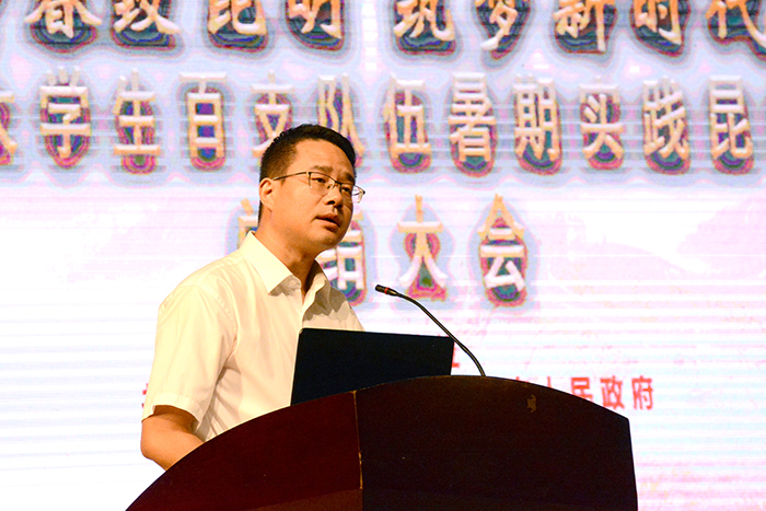8月16日上午,“青春致昆明 筑梦新时代”全国大学生百支队伍暑期实践昆明行活动总结大会在永利官网隆重举行。此次实践活动以“青春致昆明 筑梦新时代”为主题,100支队伍,近600人参与实践活动,打造“红色记忆”、“活力昆明”、“文化昆明”、“脱贫攻坚”、“绿色发展”5个实践主题,取得良好的示范引领效果。昆明市委常委、副市长胡宝国,永利官网党委副书记张祖武,共青团云南省委副书记魏妮娅,云南省文化厅机关纪委书记张劼,共青团昆明市委书记郝国栋,云南省人力资源社会保障厅就业促进处副处长马责及来昆参加活动的百支大学生实践团队师生参加了总结大会。