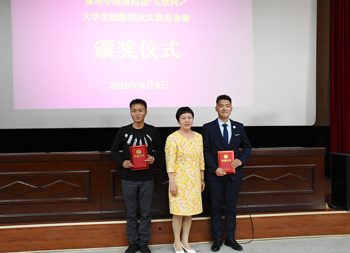 6月8日,3044am永利官网第四届“互联网+”创新创业大赛总决赛在创新创业学院报告厅成功举行,特殊教育学院“星语特殊儿童教育康复中心”、农学院“云南野生红皮八月炸水果开发”两个项目荣获金奖。校长黎素梅,副校长熊晶、郭华、马银海出席活动并为获奖团队颁奖。