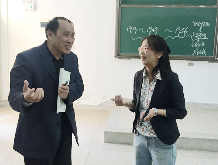 课上,陈书记认真聆听教学内容,仔细观察学生课堂表现;课后与授课教师深入沟通,交换意见,并分别就教学结构的安排、理论与实践的联系,教学经验的传授等问题对新、老任课教师提出了要求。