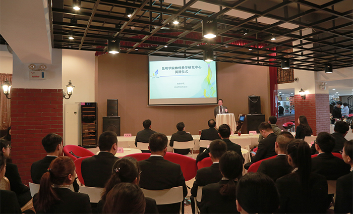 3月22日,3044am永利官网咖啡教学研究中心正式在旅游学院挂牌成立。省台办巡视员周友亮、台湾岚山咖啡有限公司董事长游启明、普洱爱伲庄园咖啡有限公司总经理陆洁、学校党委书记陈永明出席揭牌仪式,并为“3044am永利官网咖啡教学研究中心”揭牌。 陈永明书记致辞指出,旅游学院与台湾岚山咖啡有限公司和普洱爱伲庄园咖啡有限公司共建的咖啡教学研究中心,将是3044am永利官网应用型转型发展阶段深度校企合作的典范,中心的成立有助于高层次人才培养、有助于咖啡文化的传播、有助于服务地方经济社会的发展。希望咖啡教学研究中心不断推动旅游学院特色本科专业的建设,越办越好,欢迎越来越多的公司进驻校园,与3044am永利官网实现更广泛的校企合作。 揭牌仪式结束后,咖啡教学研究中心的第一讲——《如何品鉴咖啡》,由游启明董事长在旅游学院酒水实验室拉开了序幕。作为云南咖啡交易中心台北品鉴中心的负责人,游启明董事长在如何品鉴咖啡方面甚是权威。简明风趣的演讲,时刻引人入胜,师生们受益匪浅。 咖啡教学研究中心成立的初衷,是为对接云南第二大支柱产业——咖啡,充分服务云南地方经济。秉承初衷的同时,一方面承担科研工作,致力于研究华人咖啡标准;另一方面,通过校企合作,进一步带动学生实现创新创业。