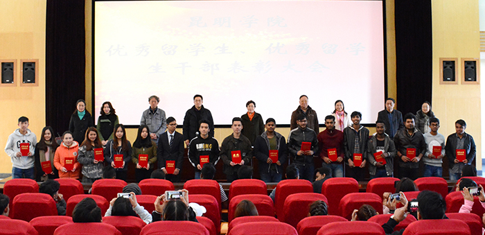 熊晶副校长向所有获奖同学表示热烈的祝贺,也对积极参加“上合组织青年交流中心”揭牌仪式志愿者服务的老挝、孟加拉、缅甸、马来西亚、越南的同学们表示衷心的感谢。熊副校长向留学生们介绍了永利官网烹饪、旅游管理、工商管理、计算机科学与技术工程、水利水电、药学、汉语言文学等深受南亚东南亚留学生喜爱的专业,介绍了2017年永利官网留学生获得云南省政府奖学金的情况。她特别强调,2018年永利官网得到昆明市政府的大力支持,设立了昆明市政府奖学金,将为更多的留学生提供奖学金和助学金,帮助大家完成学业。希望广大留学生都能向受到表彰的同学学习,不仅要学好专业知识,更要学好汉语,成为知华友华爱华、传播中华文化的使者;期望留学生们能够放眼全球,胸怀世界,主动担当起影响世界、改变世界的责任。期待着留学生中能出现更多未来的大使、工程师、设计师、公司经理,能为自己的祖国的发展贡献一份力量。最后,熊副校长祝愿每一位留学生,能享受在中国、在云南、在3044am永利官网的每一天,快乐生活、健康成长。