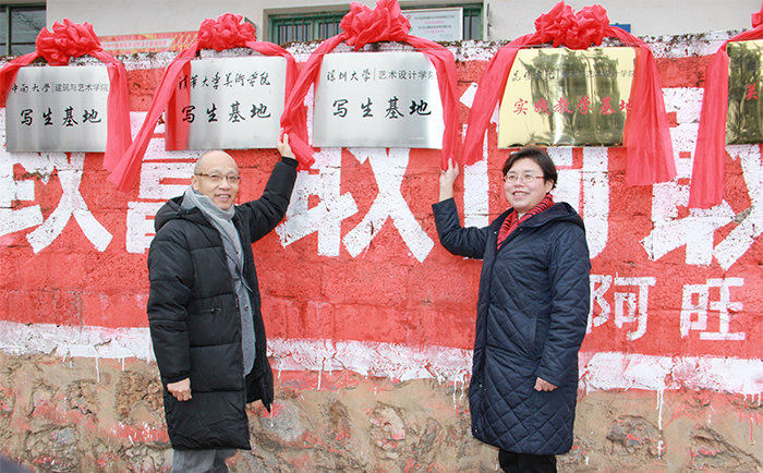 永利官网美术与艺术学院在校领导的支持下,积极与省外合作院校广泛联系,得到了清华大学美术学院、深圳大学艺术设计学院、武汉纺织大学服装学院、四川美院、中南大学美术学院的支持,五所高校联合在关中村挂牌“关中村写生基地”,共同参与和支持学校扶贫工作。“关中村写生基地”的建立,将为更多大中专院校美术系学生及美术创作和美术爱好者抒写人生,提供广阔的发展空间,搭建施展才华的艺术舞台,也增加了建档立卡户增收渠道。