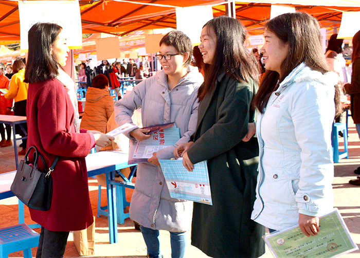 12月22日,由云南省教育厅主办,云南省大中专毕业生就业服务中心、3044am永利官网、文山学院共同承办的云南省2018届综合类院校毕业生双向选择洽谈会在永利官网聂耳广场举行。永利官网党委书记陈永明,校长黎素梅,副校长郭华、马银海到现场了解情况并指导工作。 各地州(市)教育局(就业局)、昆明市、各县(市、区)教育局;经开区就业局、高新区就业局、五华区就业局、盘龙区就业局、西山区就业局、官渡区就业局相关领导、文山学院招就处负责人及在昆各兄弟院校就业部门负责人参加了招聘会。 此次招聘会共有436家用人单位到现场进行招聘,到场招聘的单位和企业涉及高新技术、酒店、餐饮、建筑、文化、卫生、教育等多个领域,提供就业岗位8427个,现场投档数3172份,基本达成就业协议数580余份。 此次招聘会是地州高校首次在昆明与在昆高校联合举办,不仅有在昆高校学生,还有来自文山等州市的学生参加。充分发挥了平台、资源作用,拓宽了供需双方的选择空间,形成省与地州高校联动招聘格局。在招聘会现场,举办方还设置了宣传栏,向求职学生介绍《劳动合同法》、《就业促进法》等就业政策法规,让参加就业招聘的学生及时了解国家新出台的相关法律法规知识。