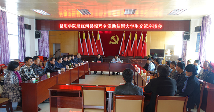 12月26日-27日,学校副校级领导孙勇率领对外合作与扶贫办相关人员及部分结对帮扶干部,到红河县垤玛乡召开2017年挂联地区大学生奖励受助家长座谈会。会议由垤玛乡人民政府分管教育领导瞿扣周主持。