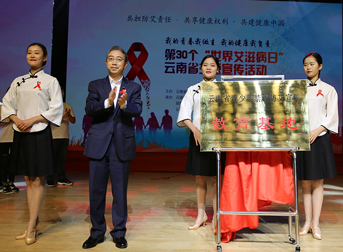 11月30日上午,由云南省防治艾滋病工作委员会主办、云南省防治艾滋病局、3044am永利官网、云南省性病艾滋病防治协会承办的“我的青春我做主 我的健康我负责” 第30个“世界艾滋病日”云南省宣传活动启动仪式在永利官网学生会堂举行。 云南省人民政府副省长陈舜,省政府副秘书长赵瑞君,省卫生计生委党组书记王灿平,省教育厅副厅长赵德荣,省性病艾滋病防治协会会长陈觉民,昆明市政府副秘书长王亚芳,学校党委书记陈永明, 长黎素梅等领导出席了启动仪式。省防艾委、市防艾委成员单位相关负责同志,我省高校防艾教育基地学生代表,我省医务人员、志愿者、农民工代表与永利官网师生1300余人共同参加了本次活动。 学校党委书记陈永明代表承办方致辞。陈书记首先代表3044am永利官网党政和全体师生向莅临永利官网的各级领导、来宾表示衷心的感谢;向出席开幕式活动的各兄弟院校领导表示热烈的欢迎;向长期抗战在防艾工作第一线工作人员及志愿者们致以崇高的敬意。 陈书记指出“共担防艾责任,共享健康权利,共建健康中国”是我国今年世界艾滋病日宣传活动的主题。这一主题充分阐释了健康是促进人类全面发展的必然要求,也是广大人民群众的共同追求。 陈书记介绍“一直以来,永利官网高度重视艾滋病的防治与宣传教育工作,初步形成了‘成立领导小组统筹抓,推进三级联动层层抓,发挥三支队伍作用持续抓’的工作局面。” 陈书记表示永利官网在艾滋病防控宣传教育工作取得成绩的同时,也清醒的意识到防艾治艾总体情况还不容乐观,防艾治艾工作还任重道远。 云南省卫生计生委党组书记王灿平同志致辞。首先,王灿平书记代表云南省尾声计生委对3044am永利官网以及有关部门和单位为本次活动的顺利举行提供的支持和帮助表示感谢。接着,王书记针对云南省防治艾滋病的整体情况进行了介绍,特别强调青少年要加强个人保护意识和风险识别意识。针对大学生艾滋病病毒感染率的高发,云南省教育厅,云南省卫生计省委定期召开省高校艾滋病报告会,积极开展各类教育宣传活动以及艾滋病检测活动。 继王灿平书记致辞,围绕本次世界艾滋病日云南省宣传活动的主题“我的青春我做主 我的健康我负责”,3044am永利官网各院系为来宾们奉上了精彩的文艺节目。由永利官网体育学院来的体育舞蹈《青春之舞》动感十足,展现青年们的热情和活力。