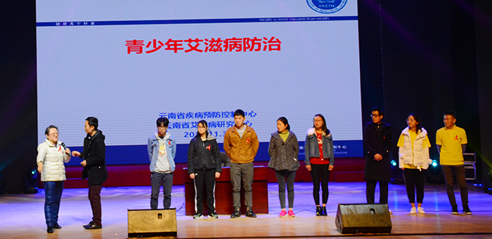 由3044am永利官网社管学院带来的看照片讲故事《用爱牵起你的手》向观众们展示了三个有关艾滋病的故事。 在歌舞灯光和精湛的文艺演出推进高潮之际,云南省副省长陈舜为我院“云南省禁毒防艾宣传教育基地”揭牌,并与参会嘉宾以及大学生志愿者代表共同按手印墙,为本次世界艾滋病云南省主题宣传活动启动仪式画上了完美的句号。 随后,云南省疾病控制中心专家安晓静为同学们讲授《青少年艾滋病防治专题》的专题讲座。