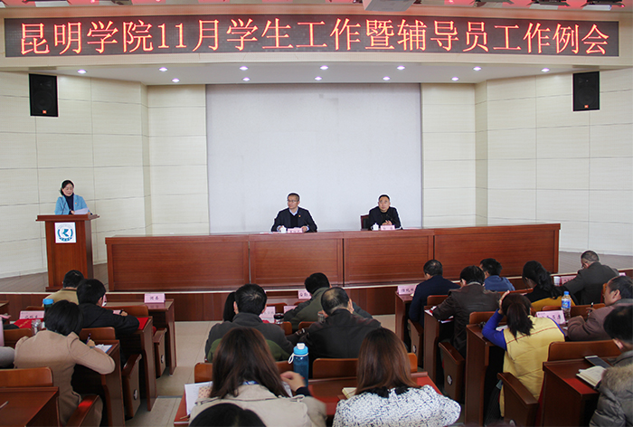 11月30日,永利官网在办公楼D区报告厅召开11月份学生工作暨辅导员工作例会。学校党委副书记张祖武、副校长郭华出席会议,学生处、保卫处、招就处等职能部门领导,各院系党总支副书记、全校辅导员及学生处全体人员共100余人参加了会议。会议由张祖武副书记主持。 会上,保卫处通报了近期校园安全情况,就近期即将开展的学生宿舍违规电器专项整治工作作了安排布置;学生处对开展学习宣传贯彻党的十九大精神——千名高校优秀辅导员校园巡讲和网络巡礼活动的开展、2017-2018学年“优良学风班”创建、2017年辅导员班主任考核、家庭经济困难学生助困等工作作了安排布置,对2017级新生入学教育知识竞赛情况、学生医疗保险学平险参保核定等情况作了通报。 郭华副校长在会上提出三点工作要求:一是要认真学习贯彻党的十九大精神。各院系要根据省委高校工委和学校党委的要求,结合实际,通过主题班会等形式广泛开展学习宣传党的十九大精神的活动。辅导员班主任对党的十九大精神要先学一步,学深一步,做好学生的思想引领工作。二是要加强对学生的日常管理工作。重点要做好学生的安全教育工作,加强违规电器的清理和违纪学生的教育管理。三是要进一步加强学风建设。良好的学风作为人才培养的根本保障,要持之以恒抓学风,在校园中营造良好学习氛围,为学生的成长成才服务。 最后,张祖武副书记作总结讲话强调指出:学工队伍要继续加强学习宣传贯彻党的十九大精神,要在“学懂、弄通、做实”上下苦功夫,做到“入脑、入心、入行”,用党的十九大精神武装头脑、指导实践、推动工作。辅导员要继续履好职、尽好责,学校党委对辅导员队伍建设高度重视,辅导员自身要加强学习,以高度负责的工作态度做好本职工作。