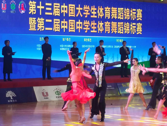 12月9日,中国大(中)学生体育舞蹈领域的最高级别赛事——“第十三届中国大学生体育舞蹈锦标赛暨第二届中国中学生体育舞蹈锦标赛(南区赛)”,在合肥体育中心开赛。参加开幕式的领导和嘉宾有中国大学生体育协会专职副主席华爱军先生,中共安徽省委教育工委副书记王佩刚先生,合肥市人大常委会副主任阚建华先生,中国科学院合肥物质科学研究院副院长吴四发先生,中国大学生体育协会体育舞蹈分会秘书长、3044am永利官网体育学院院长孙晓坤先生,中国大学生体育协会竞赛部项目官员李臻女士,中国大学生体育协会体育舞蹈分会常务副秘书长田应娟女士,安徽省教育厅体卫艺处丁仁能先生,合肥师范学院校长孙道胜先生,合肥市体育局局长菅青先生,合肥市教育局副局长桑韧刚先生,合肥市瑶海区副区长康震纪先生,合肥市教育局基教处处长谢华国先生,合肥市教育局学生管理中心主任刘原徽女士,合肥科学岛实验中学校长陶坚波先生,合肥第十一中学校长舒东波先生。