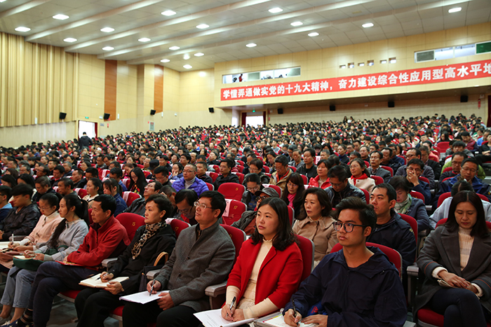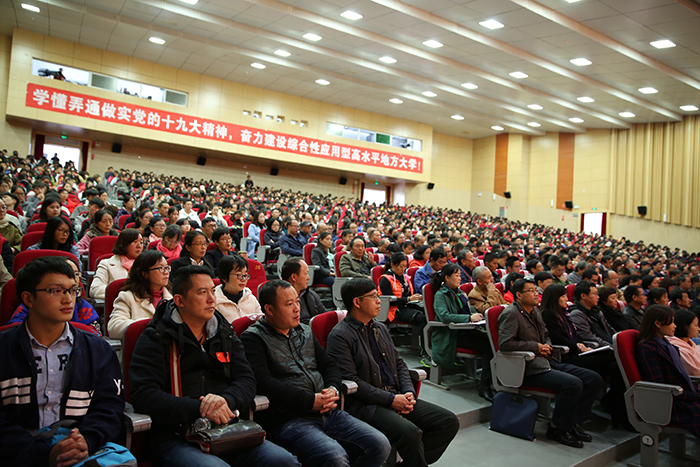 11月3日,3044am永利官网召开扩大会议,传达学习党的十九大精神,对全校学习宣传贯彻进一步作出安排。强调全校上下要把党的十九大精神学习好、宣传好、贯彻好,用精神武装头脑、指导实践、推动工作,把广大党员干部、师生员工的思想和行动统一到党的十九大精神上来,以习近平新时代中国特色社会主义思想为指引,奋力建设综合性应用型高水平地方大学。 学校党委书记陈永明主持会议并传达党的十九大精神,就深入学习宣传贯彻党的十九大精神提出明确要求。纪委书记王映平,副校长熊晶、董建华、沈凡,副校级领导孙勇出席会议。 陈永明书记从党的十九大的基本情况、报告的主要精神、中央纪委工作报告的主要内容、党章修改的主要内容、十九届一中全会精神的主要内容五个方面,系统归纳了过去5年取得的历史性成就和发生的历史性变革,深刻阐述了习近平新时代中国特色社会主义思想的时代背景、核心要义、创新观点和重大贡献,阐述了中国特色社会主义进入新时代、我国社会主要矛盾变化等重大论断,对“两步走”“两个阶段”的战略安排,对经济社会发展的重大部署,对坚定不移全面从严治党进行了系统阐释解读。报告主题鲜明,重点突出,数据详实,资料丰富,运用生动鲜活的数据、案例,系统透彻、深入浅出,具有很强的针对性和感染力。 陈永明书记指出,党的十九大是在全面建成小康社会决胜阶段、中国特色社会主义进入新时代的关键时期召开的一次十分重要的大会,是在新的历史起点上开启党和国家事业新征程的一次大会,是一次不忘初心、牢记使命、高举旗帜、团结奋进的大会,在党和国家发展史上具有重大里程碑意义,是迈向中华民族伟大复兴的重要一步。认真学习宣传贯彻党的十九大精神,关系党和国家事业继往开来,关系中国特色社会主义前途命运,关系最广大人民根本利益,也事关学校综合改革发展进程,动员广大党员干部、师生员工的思想和行动统一到党的十九大精神上来,用精神武装头脑、指导实践、推动工作,奋力建设综合性应用型高水平地方大学,培养社会主义合格建设者和可靠接班人具有重大现实意义。 陈永明书记强调,学习宣传贯彻好党的十九大精神,是学校当前和今后一段时期的首要政治任务。学懂、弄通、做实党的十九大精神,最重要的是学习贯彻习近平新时代中国特色社会主义思想,这是党的十九大精神的灵魂,是我们把握党的十九大精神的“纲”,是我们做好一切工作的主线。要抓住这条主线,在全校迅速兴起学习宣传贯彻党的十九大精神的热潮,使党的十九大精神走进支部、深入班级、融入社团,做到人人知晓,把干部、师生力量凝聚到实现党的十九大提出的各项目标任务上来,让习近平新时代中国特色社会主义思想在学校形成生动实践。 陈永明书记对学习宣传贯彻党的十九大精神作出具体安排,强调:一要抓好学习,准确领会精神实质。全校各党总支、直属党支部,全体党员要原原本本学习党的十九大报告和新党章,准确把握报告体现的本质内涵和精神实质,切实在学懂弄通做实上下功夫,切实将思想和行动统一到党的十九大精神上来,用党的创新理论武装头脑、指导实践、推动工作。二要抓住目标定位,落实好报告对教育工作提出的新要求。广大教师要以立德树人为主线,以培养社会主义建设者和接班人为目标,深入学习、全面贯彻党的十九大精神,努力把握教育历史定位,明确教育根本任务,理解教育本质要求,突出教育中国特色,将党的十九大报告中有关教育的精神实质内化于心,外化于行,为把3044am永利官网建设成为全国知名、特色鲜明的综合性应用型高水平地方大学不断努力。三要抓好贯彻落实,做到“三个结合”。全校各单位要结合党的十九大对教育工作的重大部署,联系永利官网“转型发展、内涵提升、重点突破”的思路,把党的十九大精神切实在工作中贯彻下去、体现出来,努力做到“三个结合”。一是要把贯彻落实党的十九大精神与贯彻落实全国、全省高校思想政治工作会议精神结合起来,进一步筑牢高校师生理想信念。二是要把党的十九大精神贯彻融入高校“两学一做”学习教育和一流党建创建中,着力提升高校党委的领导核心作用、各党总支、直属党支部及党支部的战斗堡垒作用和党员的先锋模范作用。三是要用党的十九大精神指导永利官网全面深化改革工作,以问题、目标、效果为导向,以改革为手段,聚焦转型和内涵,不断推动学校又好又快发展。 会上,熊晶副校长宣读了《中共3044am永利官网委员会关于成立“学习贯彻党的十九大精神”3044am永利官网宣讲团的决定》,对宣讲工作提出要求:一要提高政治站位,认真备课,精准宣讲;二要牢牢把握“学懂弄通做实“的宣讲要求,突出难点重点;三要走进支部深入班级,实现校园宣讲全覆盖。 陈永明书记等与会校领导为24名“学习贯彻党的十九大精神”3044am永利官网宣讲团成员和21名“学习贯彻党的十九大精神”学生宣讲团成员颁发聘书。这标志着“学习贯彻党的十九大精神”3044am永利官网宣讲团正式成立并全面开讲。宣讲团成员将根据不同的对象、不同的需求,走进支部、深入班级、融入社团,同党员干部、师生员工开展面对面、互动式的宣讲,扎实推动党的十九大精神走进基层、走进师生,在全校形成浓厚学习氛围。 全体中层干