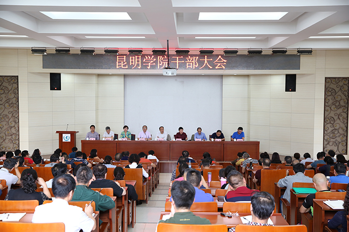 8月29日,学校召开干部大会,对标学校2017年度工作任务,总结上半年工作、安排部署下半年工作。党委书记陈永明出席会议并讲话,校长黎素梅安排部署重点工作,党委副书记张祖武主持会议。纪委书记王映平,副校长熊晶、郭华、董建华、马银海、沈凡出席大会。 陈永明书记指出,今天的大会是一个交流思想、安排工作、鼓劲加油的大会。会上,到清华大学和浙江大学培训的三位同志和到兰州大学、南京大学挂职的中层干部代表结合自己培训和挂职学习的情况和大家分享了收获和感想。黎素梅校长对2017年上半年工作进行总结,并对2017年下半年的重点工作进行安排部署,提出了工作措施,明确了工作目标任务。全校上下一定要把思想和行动统一到学校党委和行政的安排部署上来,巩固发展良好势头,再接再厉,乘势而上,紧紧围绕建设“全国知名、特色鲜明的综合性应用型高水平地方大学”的学校发展总体目标,结合各院系和部门实际,坚持解放思想、求真务实、凝心聚力,攻坚克难,高质量完成今年的各项目标任务。 陈永明书记要求,一要把握大势,履职尽责,不断推进全面从严治党。全校上下一定要把握全面从严治党的大势,履行好管党治党的政治责任,要不断增强“四个意识”特别是核心意识和看齐意识,层层传导压力,压实责任,切实做到蹄疾步稳,不断推进学校各项改革发展工作,实现学校发展再跨越。二要结合实际、落细落小,贯彻落实好全国高校思想政治工作会议精神。全校各单位,要深入学习贯彻好全国高校思想政治工作会议精神,进一步正确把握办学方向,因事而化、因时而进、因势而新做好学生思想政治工作。三要用心、用力、用情抓好各项工作的落实。以高度的政治站位,强烈的责任感、使命感和有为的担当精神做好硕士学位授权单位和硕士点的申报、首届全国文明校园、准备全面启动明年本科教学的审核性评估工作。我们要把文明校园创建与文明城市创建有机结合,积极主动参与到昆明市创建全国文明城市工作中,坚决落实好昆明市的创建要求,不拖昆明市的后腿,要在昆明市创建全国文明城市中当排头兵、起引领和示范作用,为昆明市创建全国文明城市加分点赞。 陈永明书记强调,“一分部署,九分落实”,思路已经明确,蓝图已经绘就,我们接下来就是要坚定不移地按照“转型发展、内涵提升、重点突破”的思路,以学校更名昆明大学为目标,以申报硕士学位授予单位为突破点,综合施策,精准发力,撸起袖子加油干,以优异成绩迎接党的十九大胜利召开! 黎素梅校长在安排部署工作时,紧扣“全面发展 重点突破 努力做好2017下半年各项工作”主题,对学校2017年上半年工作进行总结,对2017年下半年重点工作进行安排部署,提出工作措施,明确工作目标任务和要求。 黎素梅校长指出,2017上半年,学校以全国高校思想政治工作会议和全国教育工作会议的精神为指导,牢固树立“四个意识”,坚决贯彻执行党中央国务院、省委省政府、市委市政府的决策部署,围绕学校建设“全国知名、特色鲜明的综合性应用型高水平地方大学”的发展目标,党建工作与中心工作有机统一、相互促进、共同提高,学校各项事业取得了新进展。一是着力推进全面从严治党,科学建党水平不断提高;二是学校“十三五”事业发展规划正式发布实施;三是转型发展工作实现重要突破;四是更名工作取得实质性进展;五是申硕工作稳步开展;六是教学工作、科研工作、学生管理工作、招生就业工作、人事工作、财务工作、内控工作、国际交流工作、脱贫攻坚工作、继续教育工作等工作顺利推进、稳步实施。 黎素梅校长强调,全校上下要进一步统一思想、提高政治站位,咬住年度工作任务,抢抓时间,扎实推进下半年各项工作。一要继续做好全国文明校园创建和硕士学位授予单位申报工作;二要以审核评估为契机,不断提高教学质量。全面启动审核评估迎评工作、完成转型发展示范高校建设方案的制定、开展课程标准的制定与评价工作、探索开展本科专业认证的试点工作、加快教学成果项目的遴选培育工作、做好到南京大学跟班学习学生的选派工作;三要以提高科研管理水平为手段,促进科研工作快速发展;四要以思想政治教育为引领,做好学生管理服务工作;五要以迎接党的十九大召开为前提,全面做好学校安全维稳工作;六要以学校中心工作为核心,做好人事、计财、基建等其他相关工作。 张祖武副书记主持会议要求,一要统一思想,凝聚共识,不断提高站位,增强“四个意识”,切实把思想和行动统一到学校党委和行政的安排部署上来,扎实做好各项工作,确保完成年度工作任务。二要及时认真传达学习贯彻会议精神。各单位要迅速召开不同层次工作会议,认真传达学习、深刻领会、全面把握陈书记、黎校长的讲话精神;要对照任务和要求找差距,以问题为导向,补齐短板,做到思想、行动对标,以钉钉子精神狠抓落实,久久为功,落细落小,紧紧扭住重点工作这个“牛鼻子”,以点带面,持续用力,力争在本学期末全面完成预定的各项任务。三要立足当前,扎实做好开学各项工作。要把学习贯彻本次会议精神与科学谋划本单位、本部门下学期工作紧密结合起来,与正在开展的“两学一做”学习教育常态化制度化各项工作结合起来,把会议精神融会贯通到工作实践中,转化为推动发展的具体行动,