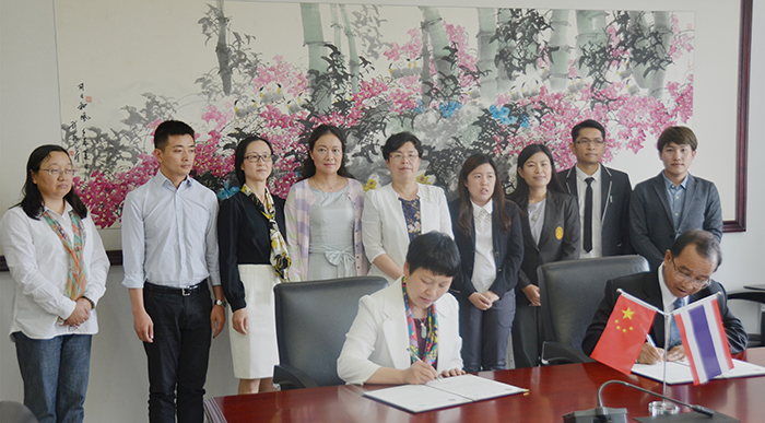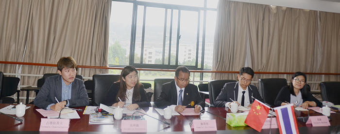 6月20日, 泰国南邦皇家大学校长Somkiat Saithanoo博士一行五人到永利官网访问座谈。永利官网校长黎素梅、副校长熊晶、经济学院院长雷新华、外国语学院书记何昊辰、外国语学院副院长王云秀、国际处副处长陈静、国际处项目管理科科长夏玲热情接待并与之会谈。 在交流座谈会上,熊晶副校长为泰国南邦皇家大学校长Somkiat Saithanoo博士一行五人就永利官网概况、办学条件、校际交流项目以及学校办学特色等内容做出了详实的介绍。 黎素梅校长对泰国南邦皇家大学校长Somkiat Saithanoo博士一行五人的到访表示热烈地欢迎,指出双方的共同点,为将来两校间的合作发展指出明确的思路。 泰国南邦皇家大学校长Somkiat Saithanoo对永利官网的接待表示感谢,会谈中他介绍了南邦皇家大学的基本情况,与永利官网校领导、经济学院、外国语学院进行了深入的交流。通过座谈交流,泰国南邦皇家大学校长表示将力推两校间的合作交流。