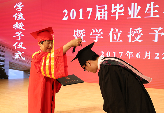 马银海副校长宣读《3044am永利官网关于审定和授予2017届全日制本专科毕业生毕业资格和学士学位的决定》,经3044am永利官网第二届学术委员会学位评定委员会委员审定通过,获得本科毕业资格学生3753名、获得专科毕业资格886名,决定授予3705名本科毕业生学士学位。与会校领导为毕业生代表颁发毕业证书。