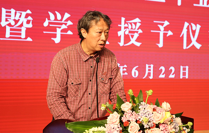 教师代表人文学院院长詹七一教授发言向毕业生表示祝贺,恭喜同学们在3044am永利官网收获了知识、培养了能力、取得了专业证书!恭喜你们在3044am永利官网认识了朋友,收获了友谊,有的还收获了宝贵的爱情!也要恭喜你们在3044am永利官网更名大学、申报硕士授权单位的重要节点奉献了你们的青春与才华!詹七一教授希望同学们继续保持学习的态度、不断提升人格境界、承担起社会责任。