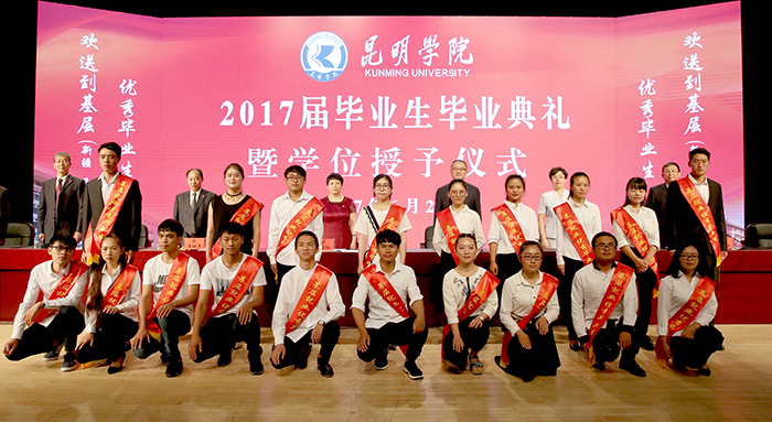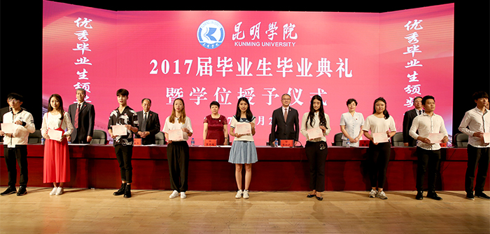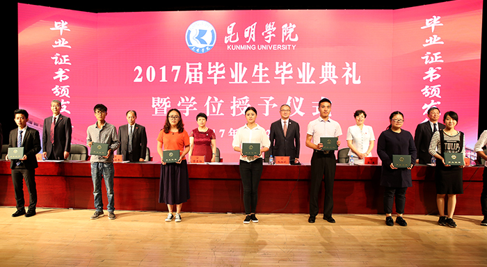 张祖武副书记宣读《云南省教育厅关于表彰2017届普通大中专学校优秀毕业生的决定》和《3044am永利官网关于表彰2017届校级优秀毕业生的决定》,与会校领导分别为获奖学生代表颁发荣誉证书。