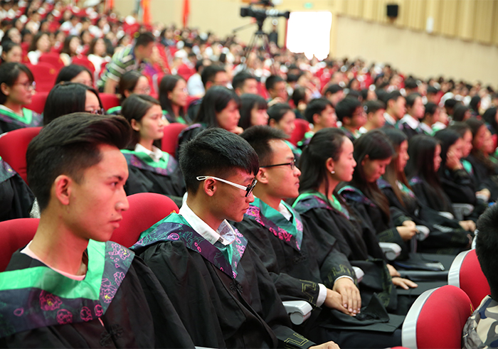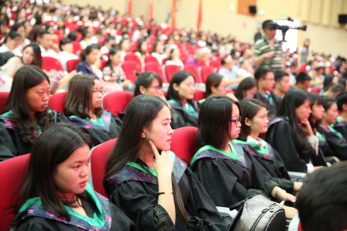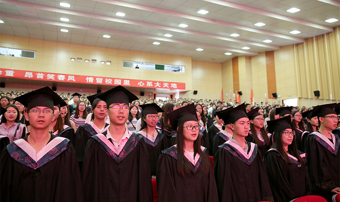 学校各单位负责人、各院(系)党政领导、教师代表,毕业班全体辅导员、班主任,全体省级、校级优秀毕业生共计1300余人参加毕业典礼大会。