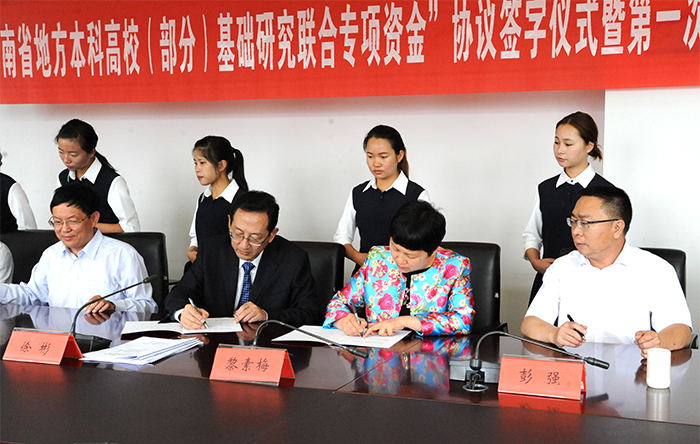 永利官网黎素梅校长在会上作讲话。黎素梅首先感谢省科技厅、省教育厅领导对“云南省地方本科高校(部分)基础研究联合专项工作的关心和大力支持。她指出,“云南省地方本科高校(部分)基础研究联合专项资金”协议签字仪式暨第一次理事会在3044am永利官网举行,对参会的7所地方本科高校来说是一次共谋发展的好机遇。同时,感谢省科技厅和6所高校对3044am永利官网的信任和支持。黎校长表示,3044am永利官网将认真做好省科技厅赋予的专项资金专用账户管理工作,履行好专项管理办公室的服务职责,严格按照理事会制定的相关规定,规范、高效做好专项资金的管理和使用,按照联合专项要求足额配套资金,保证立项的项目顺利完成。黎校长强调,7所地方本科高校要以此次会议为契机,结合自己的特色优质学科和各方面的实力,联合攻关,努力把联合专项做成一个品牌,实现共同提升、共谋发展。