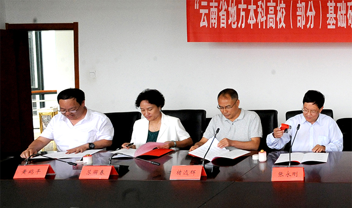 会上,云南省科技厅厅长徐彬分别与3044am永利官网校长黎素梅、曲靖师范学院副校长张永刚、红河学院副校长彭强、大理大学副校长褚远辉、玉溪师范学院副校长苏丽春、楚雄师范学院副校长陈颖、保山学院党委副书记黄鹤平签订《云南省地方本科高校(部分)基础研究联合专项资金的协议》。