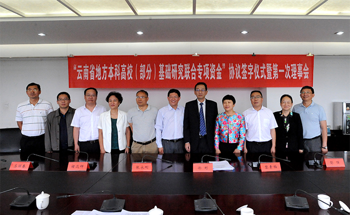 6月26日,“云南省地方本科高校(部分)基础研究联合专项资金”协议签字仪式暨第一次理事会在永利官网办公楼411会议室举行。云南省科技厅厅长徐彬,省科技厅基础研究处处长张红云、调研员石晓红,省教育厅科技处处长白玉兵,3044am永利官网党委书记陈世波、校长黎素梅,曲靖师范学院副校长张永刚,红河学院副校长彭强,大理大学副校长褚远辉,玉溪师范学院副校长苏丽春,楚雄师范学院副校长陈颖,保山学院副书记黄鹤平以及7所高校科研处负责人参加了会议。