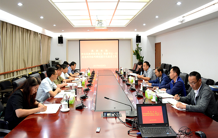 6月29日,河北民族师范学院党委副书记王铁率校园文化建设考察团一行到永利官网考察交流。