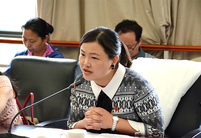 离退休党员代表李建民发言 马克思主义学院副教授苟圆发言 民盟3044am永利官网总支主委、人文学院副教授郭鹏群发言 自机学院党总支干事学生支部书记普翠萍发言 学生党员代表王世香同学发言