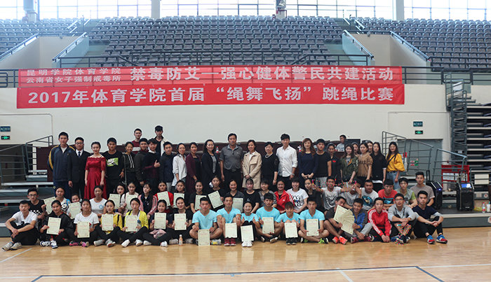 4月14日,体育学院在综合体育馆举行了首届“绳舞飞扬”跳绳比赛,云南省教育厅体卫处处长董一凡、永利官网副校长马银海莅临指导。