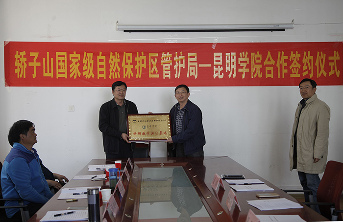 3月24日,副校长马银海代表学校与轿子山国家自然保护区在生命科学与技术系会议室签订了共建生物多样性科研教学基地协议。生科系副主任孔云虹、副书记聂铭、科研处副处长刘开庆和轿子山国家自然保护区局长张映华、副局长马玉春及我系部分教师代表参加了签约仪式。
