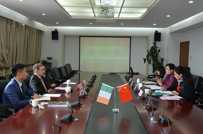 3月29日,爱尔兰阿斯隆理工学院校长卡荣•欧•凯恩教授、爱尔兰阿斯隆理工学院亚洲区总监孟晶先生来永利官网访问,云南杨丽坤文化产业投资(集团)有限公司董事长唐凤楼先生陪同访问。