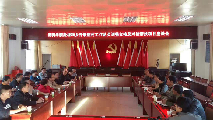 动员会后,在马加升、尤兴明的率领下,3044am永利官网2017年赴红河县垤玛乡扶贫工作队的十位扶贫工作队队员,以及2016年的三位扶贫老队员奔赴垤玛乡,于下午6点到达,紧接着召开了驻村工作队员交接及对接帮扶项目座谈会,座谈会由垤玛乡党委副书记钱义成同志主持、垤玛乡副乡长李文能、武装部长瞿扣周以及党政办主任刘福,腊哈村、河玛村、牛红村、独格村村总支书记、村主任参加了会议。