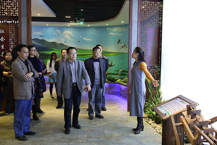 交流座谈前,孙海清副校长一行深入永利官网滇池流域生态文化博物馆实地参观。“3044am永利官网滇池流域生态文化博物馆是以滇池流域作为博物馆建设的特定区域,以生态文化作为博物馆建设的特定主题,以展示滇池流域自然生态、社会生态、文化生态、产业生态、景观生态为主要内容。”来宾一边认真逐一观看馆置实物、图片、影像,一边仔细听取工作人员的讲解。来到影像展示厅,来宾驻足观看了滇池流域自然生态环境演变及人文社会历史变迁视频。大家一致认为,博物馆建设通过实物、图片、影像、数字等多种形式,展示了滇池流域自然生态环境演变及人文社会历史变迁,借得学习借鉴。