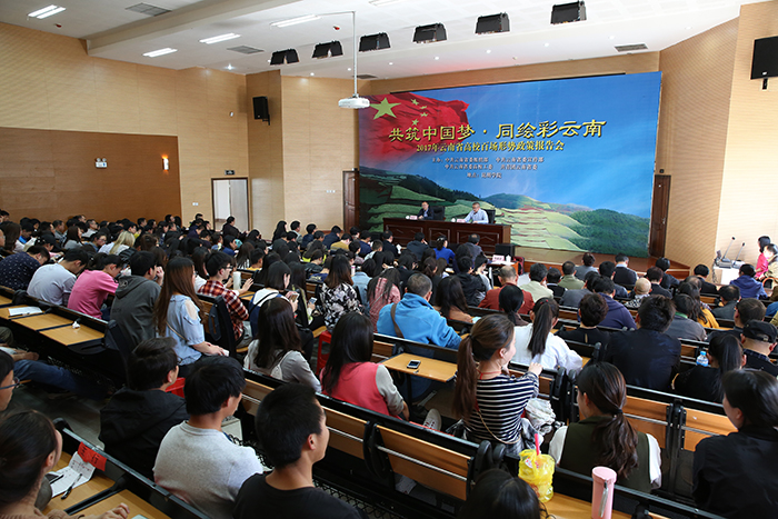3月23日,省委宣讲团成员、省社会科学界联合会党组书记、主席、研究员、博士生导师张瑞才应邀到3044am永利官网,为“共筑中国梦•同绘彩云南”2017年云南省高校百场形势政策报告会宣讲“省第十次党代会精神”,强调了大会胜利召开的重大意义,展示了新成就,分析了省情和面临形势,解读了实现跨越发展的重大部署,提出坚定不移推进全面从严治党要求。会议,希望广大青年学生和干部教师树立共产主义远大理想,坚定马克思主义信仰。 学校党委副书记张祖武主持报告会并就进一步学习贯彻省第十次党代会精神提出要求,副校长熊晶、马银海、沈凡与师生代表和党员干部一同聆听报告。 张瑞才书记结合自己多年社科研究成果,紧紧围绕省委书记陈豪在云南省第十次党代会上作的题为《紧密团结在以习近平同志为核心的党中央周围 勇于担当 奋发有为 为云南全面建成小康社会而努力奋斗》的报告内容,回顾了省第九次党代会以来云南经济社会发展取得的新成就,对今后5年云南经济社会发展的指导思想、奋斗目标、主要任务和战略举措进行了深刻的阐释和全面的解读。 报告指出,省第十次党代会,是在我省认真学习贯彻党的十八届六中全会精神重要时刻、决战脱贫攻坚决胜全面小康关键阶段召开的一次十分重要的会议,是全省政治生活中的一件大事。这次大会是一次高举旗帜、维护核心的大会,是一次凝心聚力、团结鼓劲的大会,是一次聚焦跨越、共谋发展的大会,是一次发扬民主、风清气正的大会,是一次承前启后、继往开来的大会,对于进一步团结和动员全省广大党员、干部和各族人民,紧密团结在以习近平同志为核心的党中央周围,深入学习贯彻习近平总书记系列重要讲话和考察云南重要讲话精神,统筹推进“五位一体”总体布局和协调推进“四个全面”战略布局,坚持新发展理念,坚持稳中求进总基调,主动服务和融入国家发展战略,为云南实现跨越式发展、全面建成小康社会、各族人民幸福生活而努力奋斗,具有十分重大而深远的意义。 报告强调,深入学习贯彻习近平总书记系列重要讲话精神,动员全省广大党员、干部和各族人民,紧密团结在以习近平同志为核心的党中央周围,解放思想、改革开放,勇于担当、奋发有为,主动服务和融入国家发展战略,闯出一条跨越式发展路子来,推进民族团结进步示范区、生态文明建设排头兵、面向南亚东南亚辐射中心建设,为云南全面建成小康社会而努力奋斗! “理想因其远大而为理想,信念因其执着而为信念。”张瑞才书记解读《报告》提出的坚定不移推进全面从严治党时,希望广大青年学生和干部、教师要牢固树立共产主义的远大理想,把马克思主义作为信仰,高举中国特色社会主义伟大旗帜作为一生的追求。作为一个共产党员,要加强理论学习,多读我们共产党自己的圣经,学原文、读原著,用科学理论武装我们的头脑,让马克思主义深深植根于我们的头脑,指引我们前进的方向,否则迷失方向走上不归路。 “通过报告学习,对省第十次党代会的精神有了更加全面、深刻、清晰的认识和理解。结合自己工作实际、按照全面从严治党的要求,我们一定要在加强理论武装、坚定理想信念上下功夫”一位思政教师表示,结合青年学生的特点,不断创新教育方式,强化理论学习、党性教育,确保思政教育理论深厚、政治清醒、信念坚定。“做有理想、守信仰的时代青年,倍惜美好学习时光,努力学习理论知识和专业文化知识,为进出校园投身伟大理想事业建设作好充分准备。”一位学生聆听报告后激情而坚定地说。