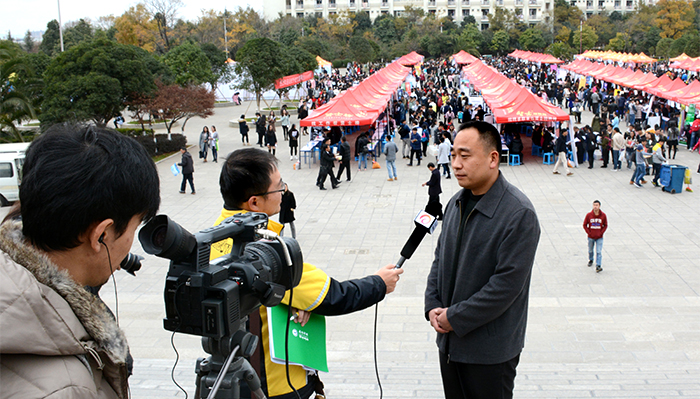 在招聘会现场,副校长郭华就永利官网毕业生就业创业工作,接受云南电视台、昆明电教育视台专访。副校长马银海、宣传部、招生就业处及各院系负责人与受邀参加招聘会的县区教育局领导和部分高校招生就业处负责人就人才培养、创新创业等主题进行了座谈。
