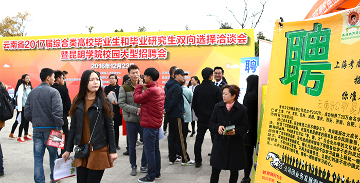 12月23日,由云南省教育厅主办,云南省大中专毕业就业服务中心和3044am永利官网承办的云南省2017届综合类高校毕业生双向选择洽谈会暨3044am永利官网校园大型招聘会在永利官网聂耳广场成功举办。云南省高校工委副书记陶晴,省大中专毕业生就业服务中心主任方伟、副主任周舟,永利官网校长黎素梅、副校长郭华、马银海等领导亲临招聘会现场指导工作。