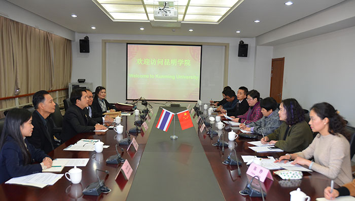 北碧府皇家大学校长一行6人在参观了校园后,双方举行了正式会谈。副校长熊晶受校长黎素梅委托,介绍了学校的办学历史、专业设置,学校与东南亚国家开展国际交流合作的概况,与清迈大学、东方大学、正大管理学院等高等院校的合作办学等方面的情况,表达了希望双方学习泰语及汉语的学生到对方学校交流学习的意愿。