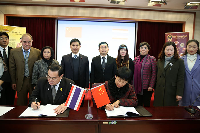 11月29日,中泰职业教育交流会在昆举行。下午会间,中泰职业教育交流会的各位代表访问永利官网,并与永利官网签署3项合作协议。永利官网校长黎素梅分别与泰国工业部食品研究所所长勇武•韶华蓬,泰国馆集团有限公司董事长李文莉和昆明滇池泛亚文化研究学会执行会长龙东林等签署合作协议。泰王国驻昆总领事鹏普•汪批塔亚、泰王国驻昆商务领事娜查敦出席访问交流会,并见证合作协议签署。