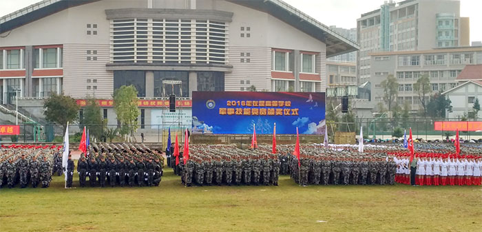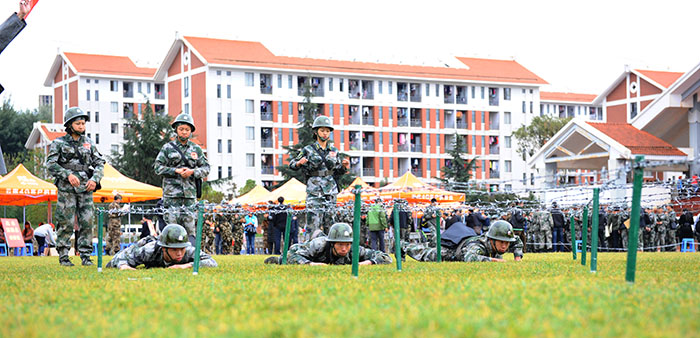 本次竞赛有来自在昆高校的39支代表队的近2000人参加,在三天时间内完成了军事理论考试、单兵战术、五公里越野、精度射击、定向运动等多个科目的竞赛和分列式汇报表演。3044am永利官网由武装部副部长吴向东带队,组织了经济学院、社管学院、人文学院、学特学院、体育学院、医学院162名2016级新生参加了此次军事技能竞赛。