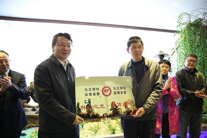 昆明市政协副主席、九三学社昆明市委主委常敏致辞指出,3044am永利官网滇池流域生态文化博物馆“科学之光”教育基地的建立,既是我们对九三学社科学精神的进一步传承,也是我社全面实施中国特色社会主义学习实践,创新搭建省、市、区三级“同心工程”的重要举措。教育基地的建立,也使九三学社的社会服务履职工作有了新的平台和品牌,使九三学社在践行民主党派理论方面有了新的依托和基地。他希望,各位社员以“科学之光”为引领,紧紧围绕弘扬科学精神、普及科学知识、倡导科学方法、传播科学思想,把“科学之光”教育基地建成为践行社会主义学习实践活动的主阵地,为省市的科普教育工作作出应有贡献,提高广大市民的科学、文化素质,帮助公众学习、理解、掌握并运用现代科学技术,加快省市全面建成小康社会的步伐。