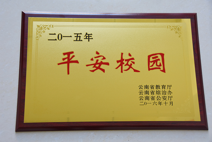 2011年,云南省教育厅、云南省综治办、云南省公安厅启动了云南省“平安校园”创建活动,2012年4月永利官网经过创建被命名为首批云南省“平安校园”。根据«关于在全省开展“平安校园”创建活动的实施意见»规定:“省级平安校园每4年命名表彰一次,获得年度省级平安校园的学校每年度须接受复核和考评,年内发生‘一票否决︐情形的将取消其称号”。从2012年起,永利官网每年度接受并顺利通过了上级部门的复核和考评。2015年底,首批云南省“平安校园”期限届满,永利官网根据云南省“平安校园”创建标准和条件又积极申报,2016年1月,云南省“平安校园”考评领导小组莅临永利官网进行了检查和考核后,对永利官网“平安校园”创建活动给予了较高评价和充分肯定,永利官网再度被评为云南省“平安校园”。