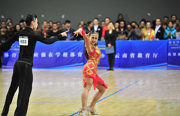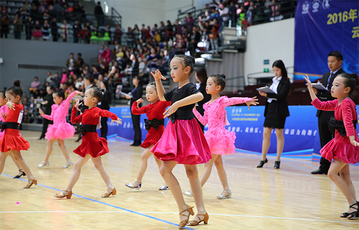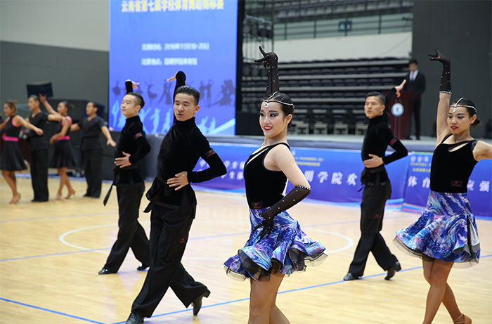 据悉,随后展开的云南省第七届学校体育舞蹈锦标赛,共设有拉丁舞、标准舞两大舞蹈类别,伦巴、恰恰、牛仔和华尔兹、狐步、探戈等10个舞种,单人、双人、团体队列舞、表演舞、校园体育舞蹈、民族体育舞蹈6个比赛类别。有来自云南省12个州市各大、中专院校、中小学和幼儿园的60余个参赛学校,1000余名选手进行角逐。参赛选手为了自己的舞梦人生、冠军目标,跃跃登场使出浑身解数,纷纷亮相展示自己的舞蹈技艺。选手紧张、激烈角逐,裁判员严格遵循公平、公正的原则,按照音乐节奏配合、身体基本姿势、舞蹈动作、旋律的掌握以及对音乐的理解、舞步等方面对参赛选手进行评分。选手不论是三岁的幼儿,还是十四岁的中学生,他们每个动作做得是那样认真、到位,表演专业,舞姿优美,整个比赛的舞场成了他们享受艺术的盛宴,充分展示了云南学校体育舞蹈发展速度快、普及广,参赛选手人数多、舞艺水平高的一大亮点。